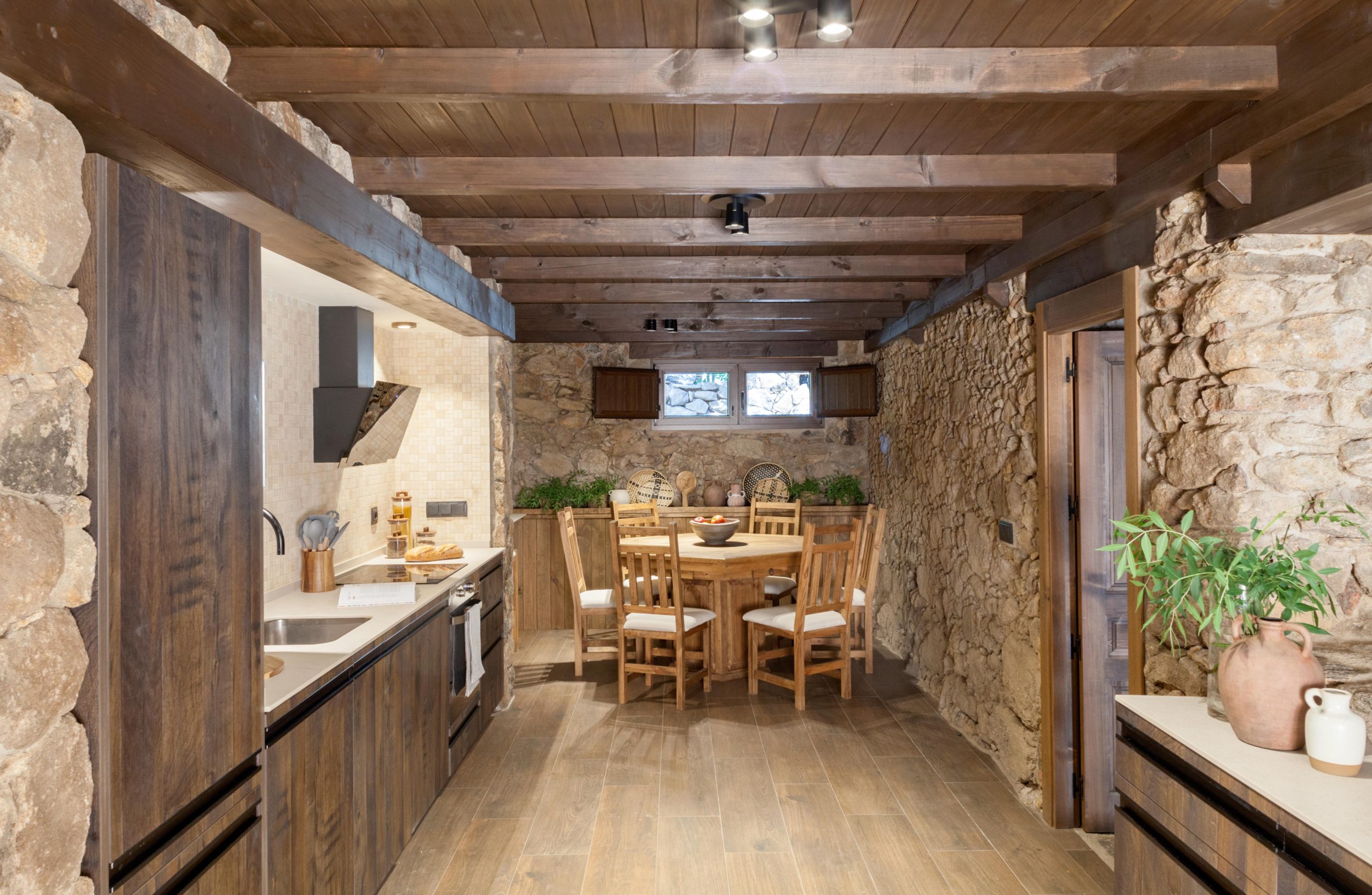 - Servicios Adaptado a personas con discapacidad (1 habitación), Baño: ducha (7), bañera de piedra, jacuzzi, secador de pelo (7), papel higiénico y amenities de cortesía, Botiquin, Calefacción: chimenea interior (2), suelo radiante-refrigerante (geotermia) y a/c frío-calor, Cocina (2): cafetera (italiana y de cápsulas), frigorifico combi, exprimidor, hervidor, horno, lavavajillas, microondas, batidora, plancha, tostadora y vitrocerámica, Comida a domicilio, Cuna de viaje, Disponibilidad de camas supletorias (4 - aumenta capacidad hasta 18pax), Disponibilidad de servicio de limpieza diario, Dormitorio y lavanderia: almohadas (adicionales también), toallas, ropa de cama, mantas (adicionales también), lavadora, plancha y perchas, Exterior: tumbonas, cama balinesa, mobiliario, barra con refrigeradores/congelador, horno de leña con menaje, barbacoa de carbón/leña y paellera de gas con paelleras (19p, 12p y 5p), Extintor de incendios, leña de cortesía, Menaje (2): cazuelas, sartenes, platos, cubiertos, copas de vino y olla gigante, Se admiten mascotas, Trona, TV, Wifi, Zona para trabajar